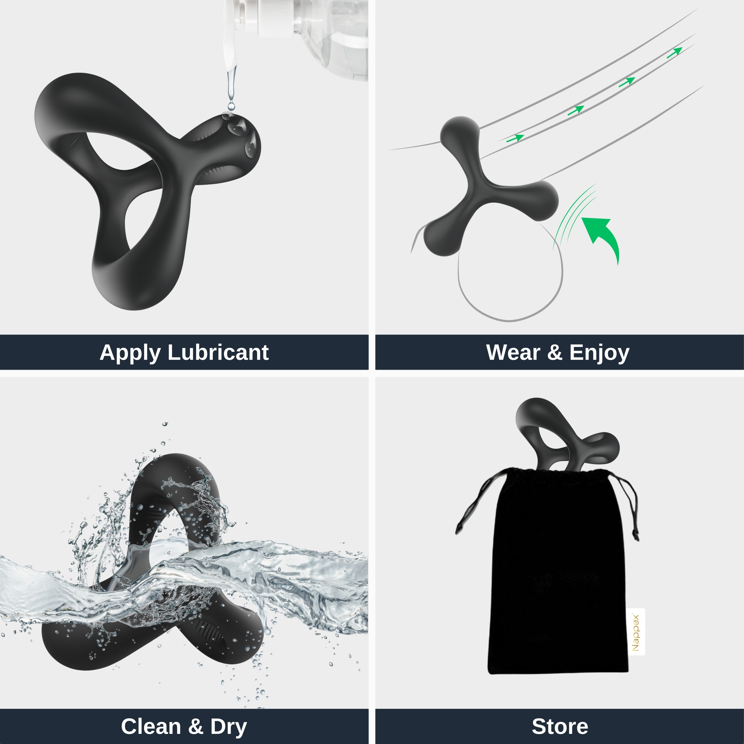 De ring is speciaal ontwikkeld met een ergonomisch design, wat resulteert in optimaal comfort tijdens het gebruik. De ring bestaat uit maar liefst drie (3) uiteinden voor de penis, testikels en schacht. Hierdoor blijft de ring stevig op zijn plaats zitten en ervaar je in een mum van tijd een hardere en vollere erectie.