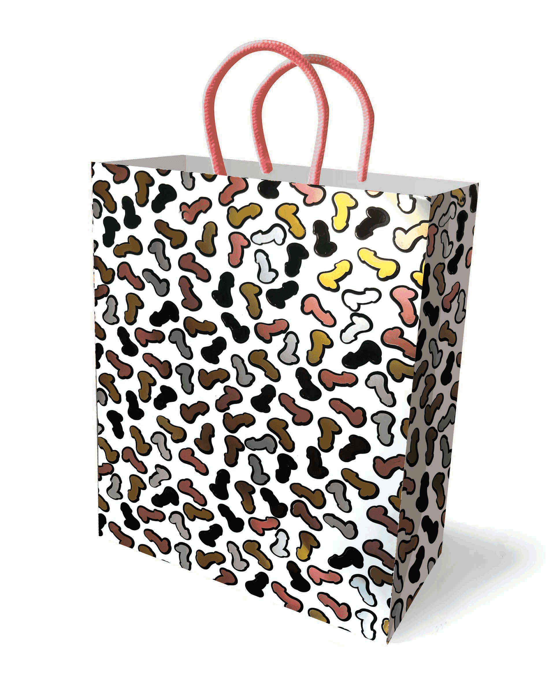 Deze middelgrote cadeautas uit onze bestverkochte Glitterati-vrijgezellencollectie is gemaakt van hoogwaardige materialen en prachtig ontworpen voor de elegante en speelse bruid. De Glitterati-lijn is voorzien van onze kenmerkende, met goud, zilver, roségoud en brons bedrukte penissen in metallic folie en is perfect als cadeau voor een vrijgezellenfeest of bruiloft.