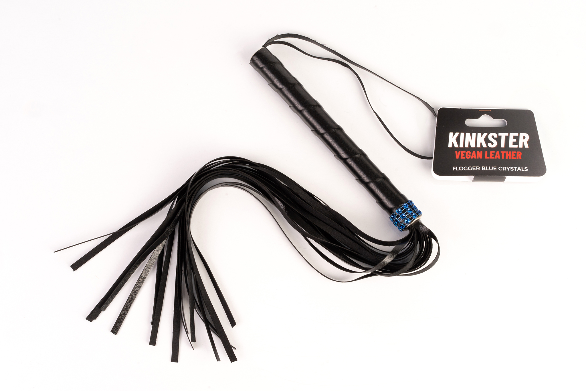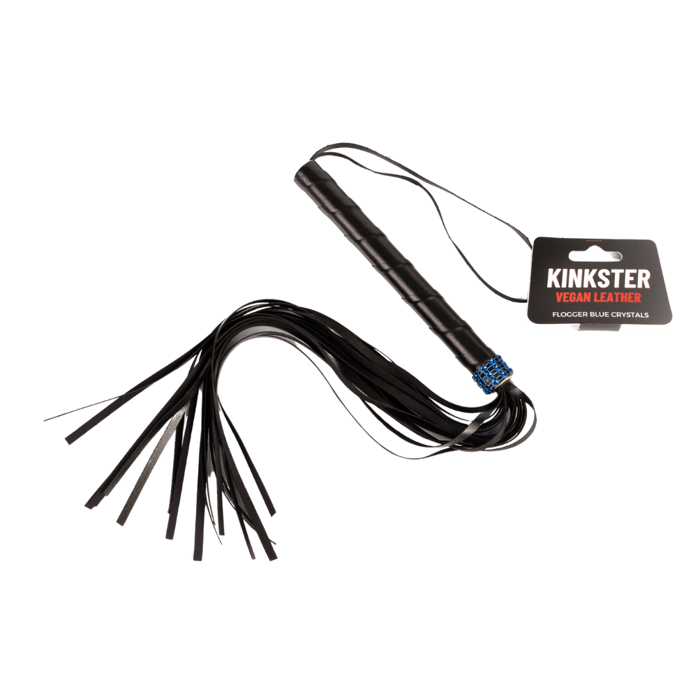 Kinkster – Veganistisch leer – Handgemaakt – Flogger blauwe kristallen