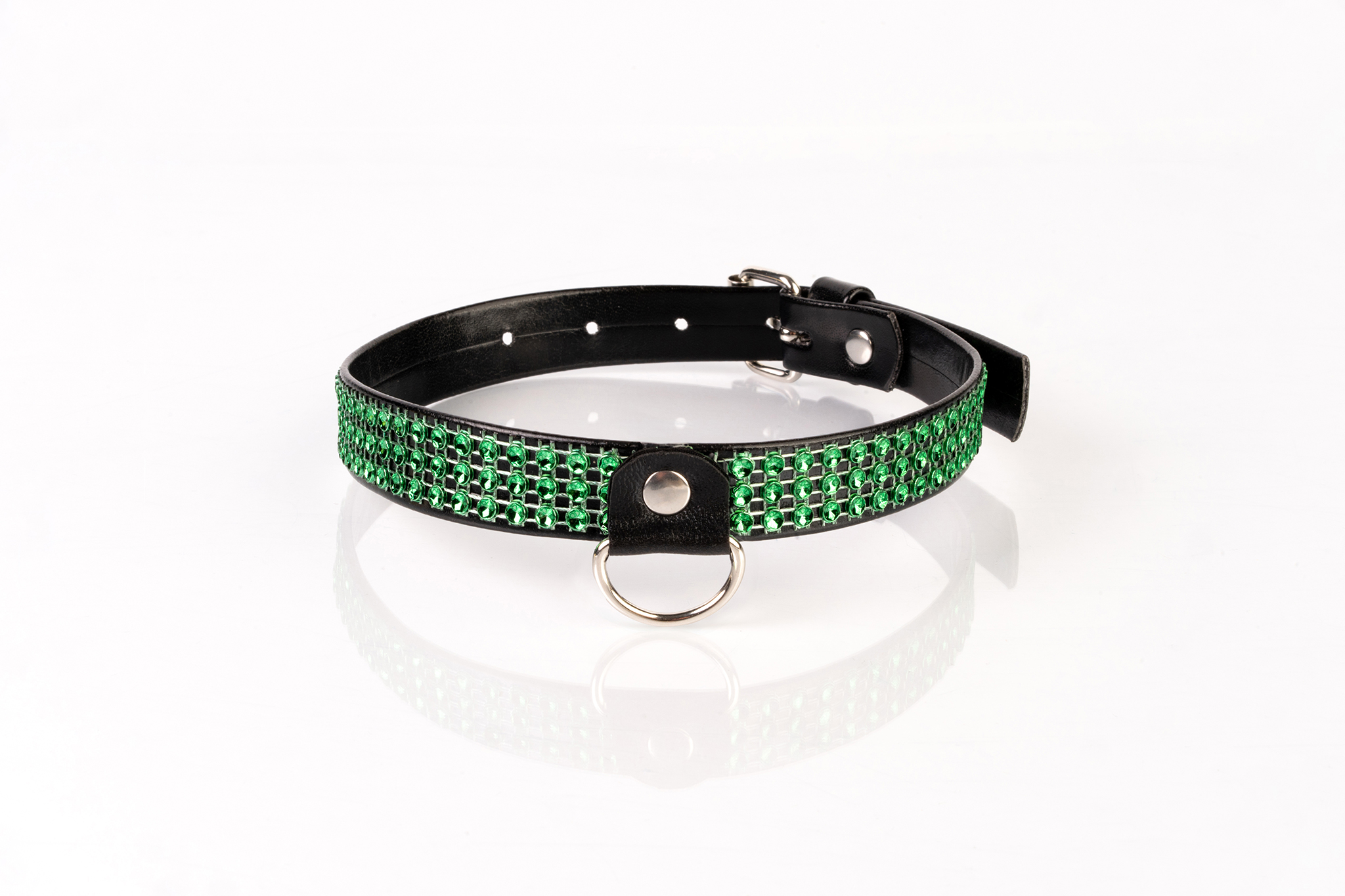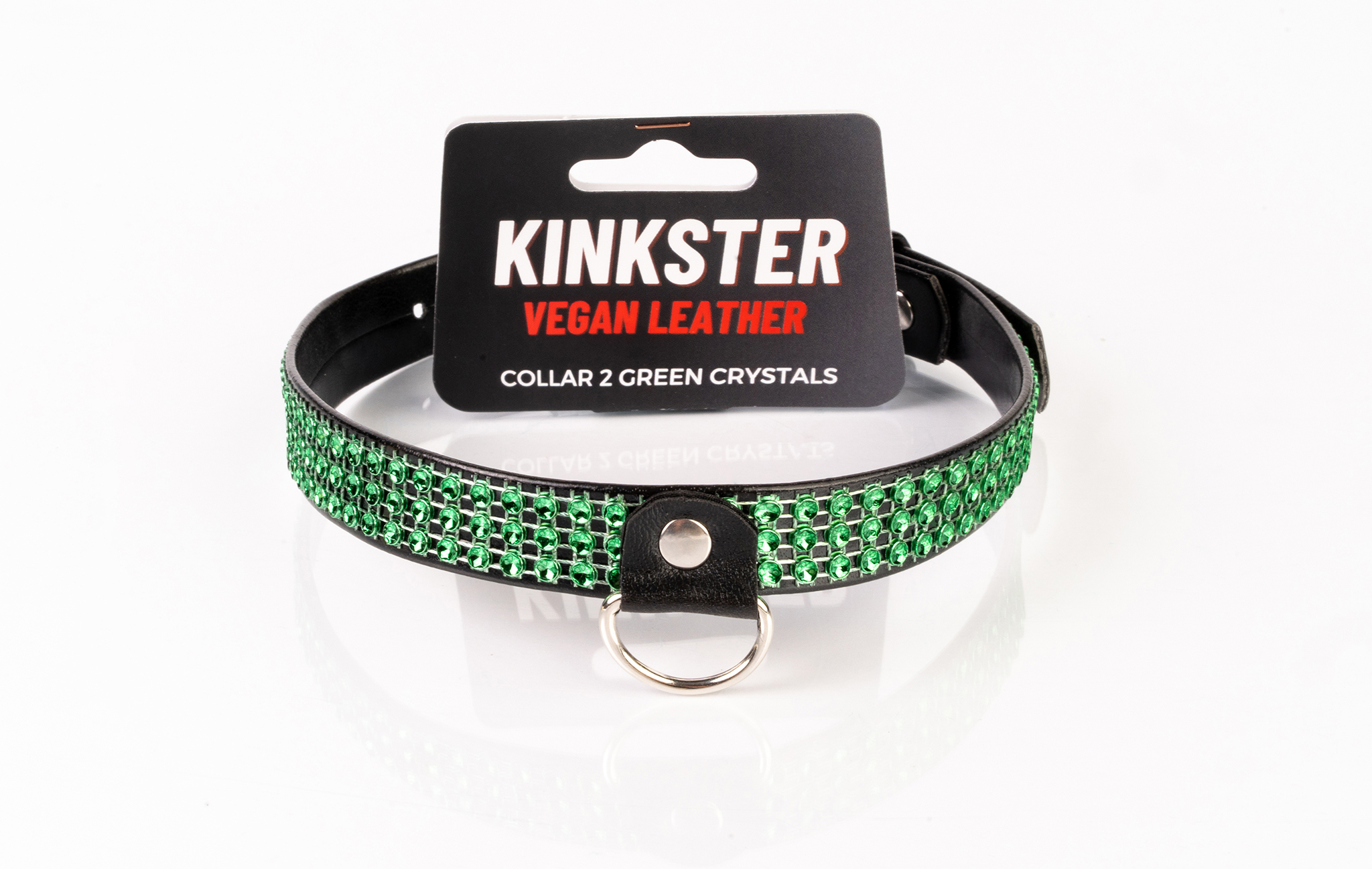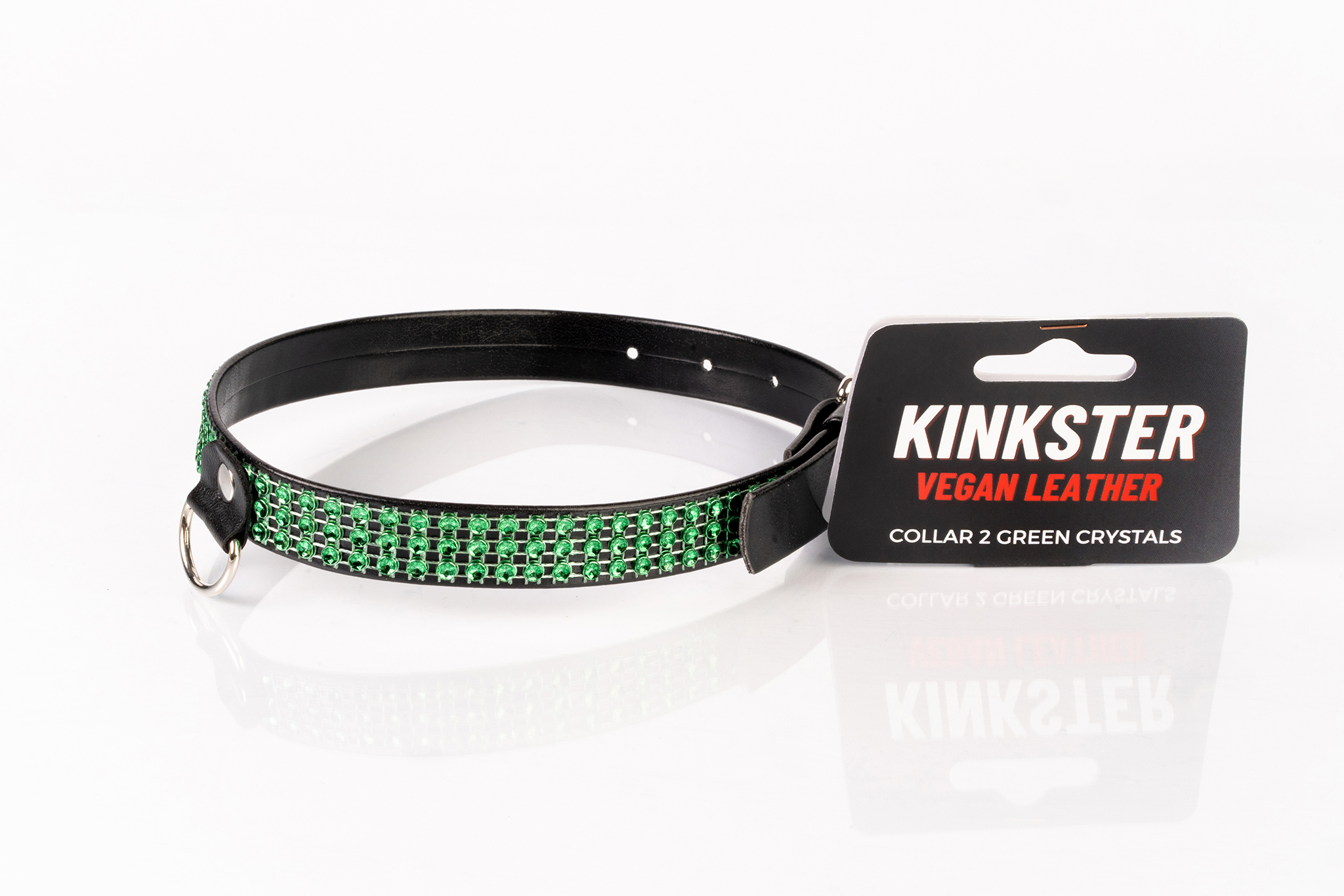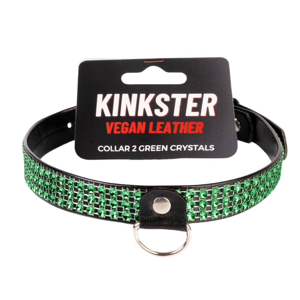Kinkster – Veganistisch leer – Handgemaakt – Halsband 2 groene kristallen