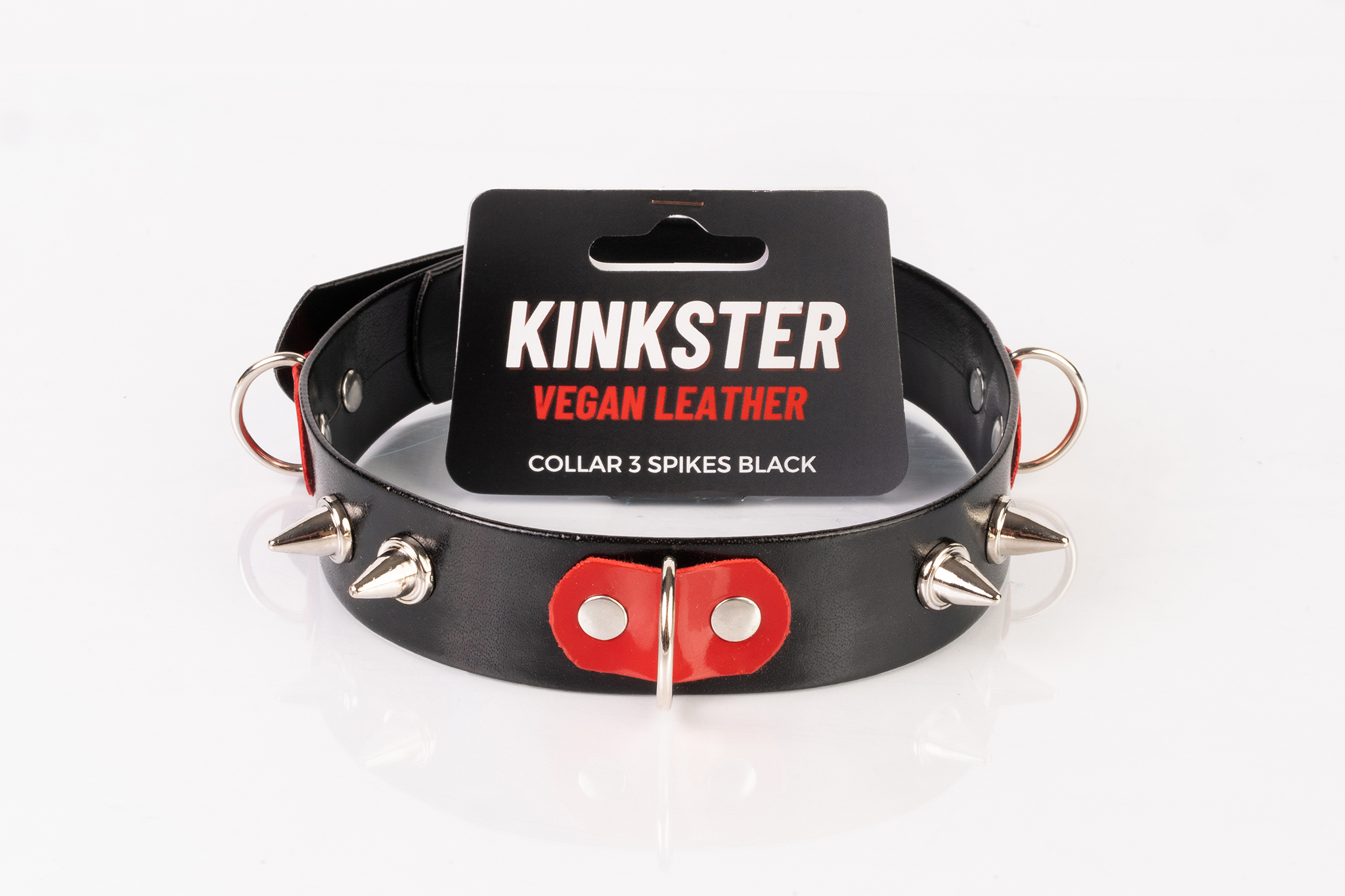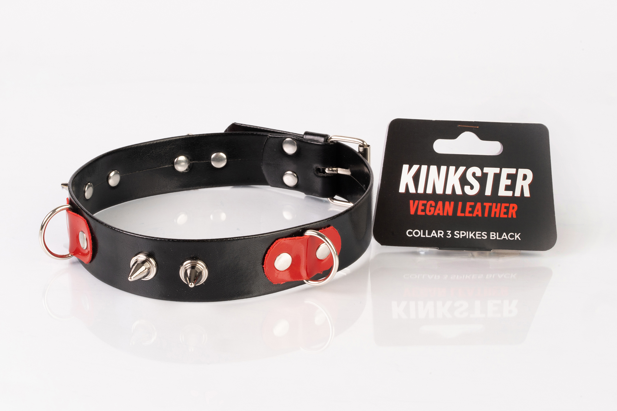 Kinkster – Veganistisch leer – Handgemaakt – Halsband 3 spikes zwart