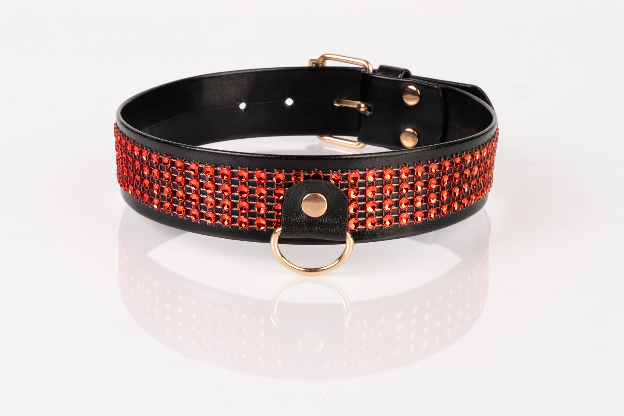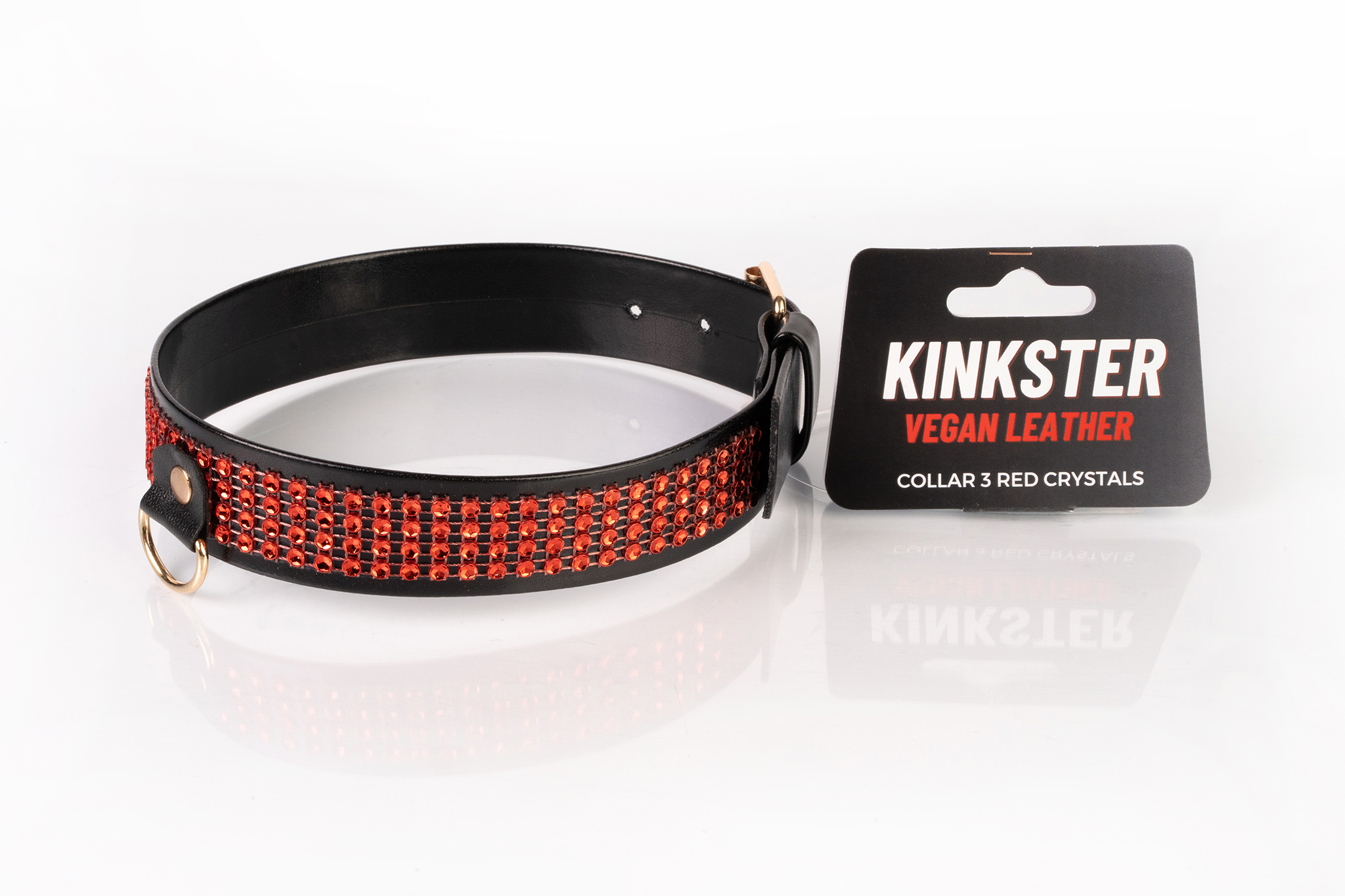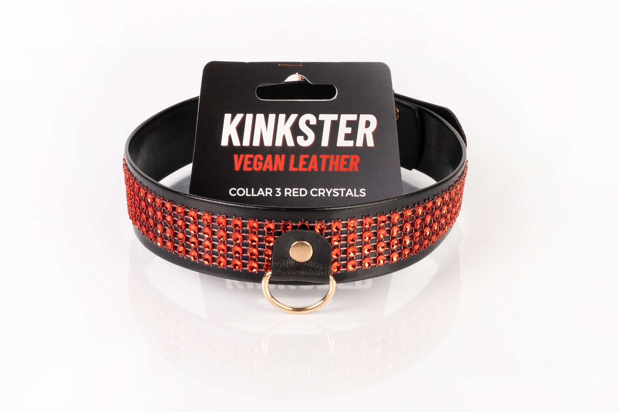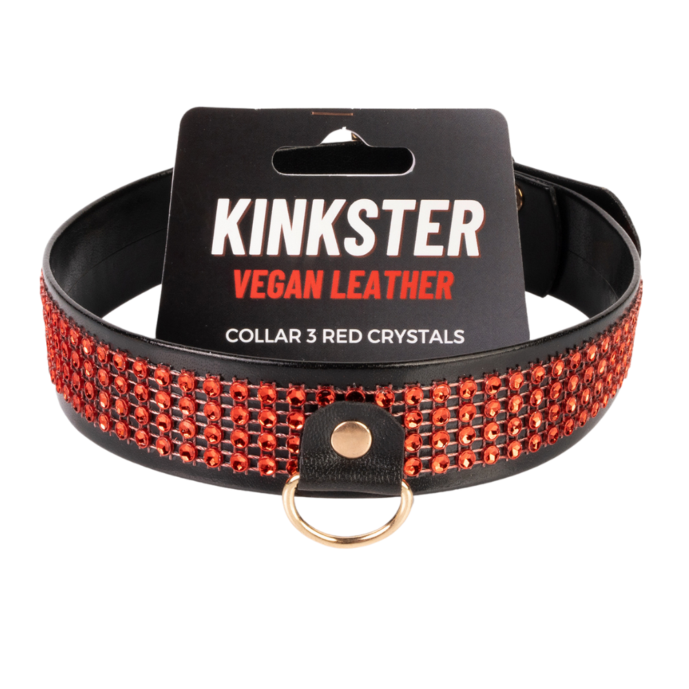 Kinkster – Veganistisch leer – Handgemaakt – Halsband met 3 rode kristallen