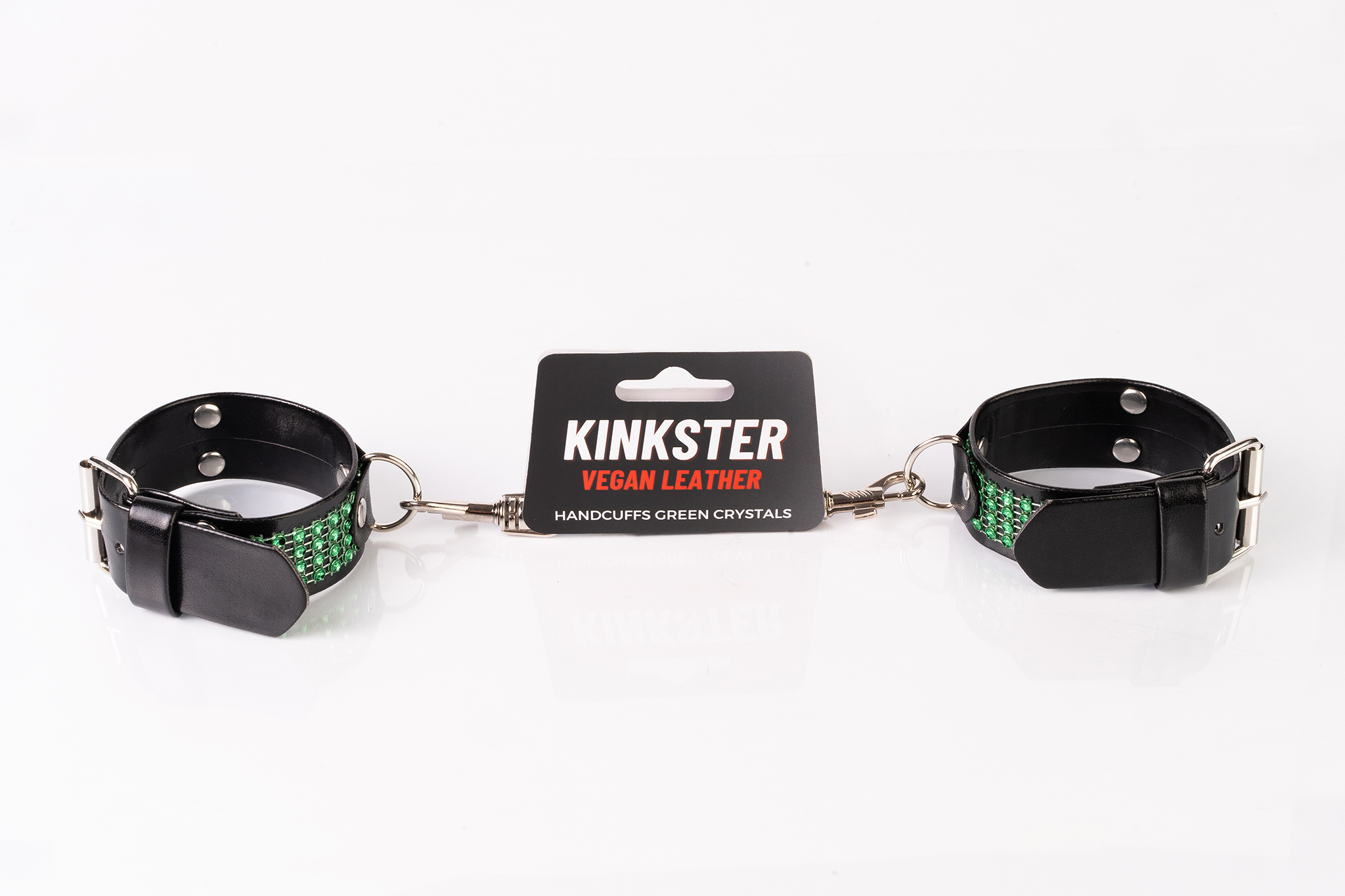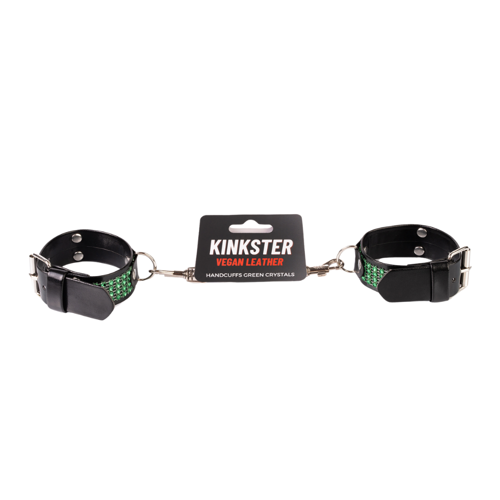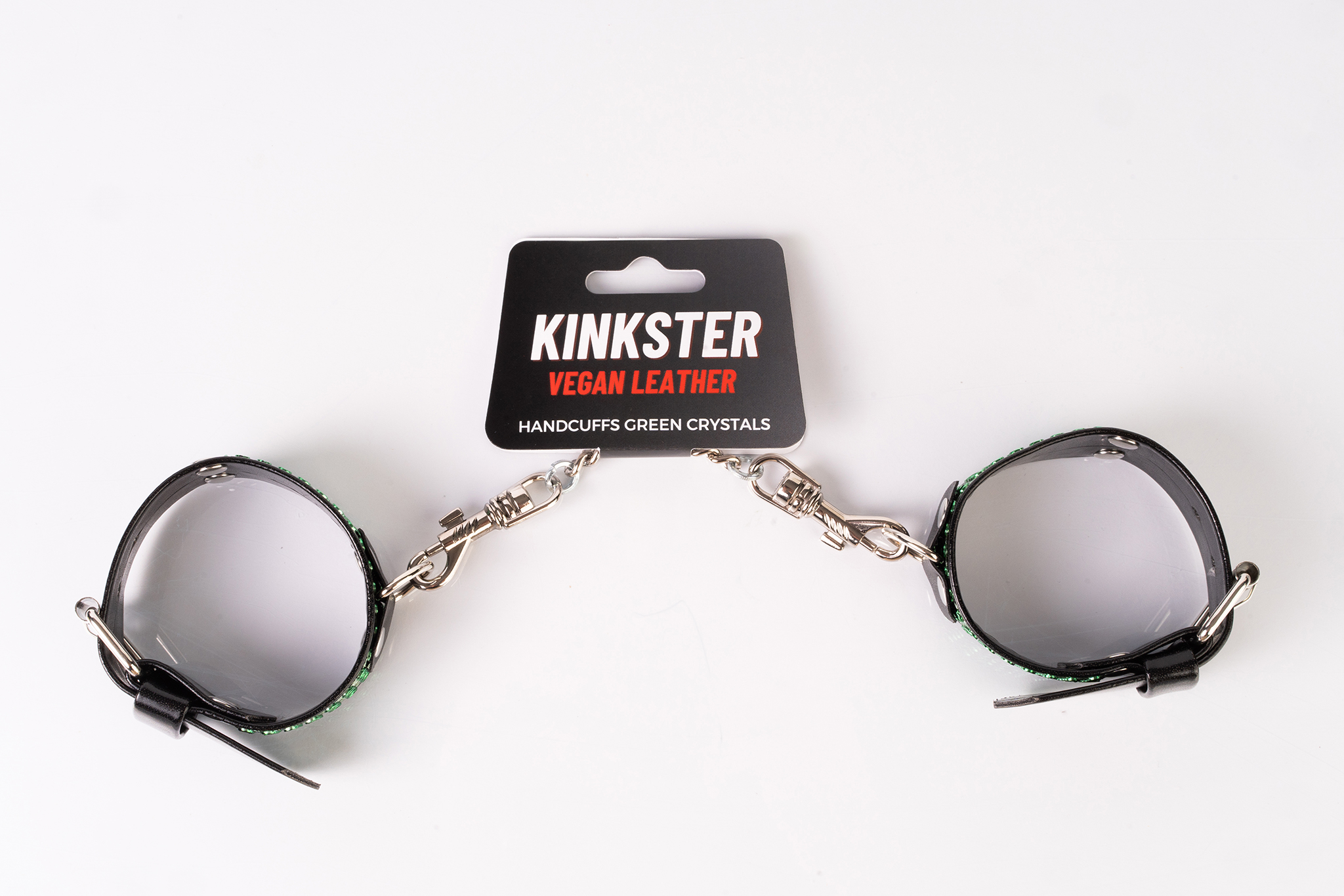 Kinkster – Veganistisch leer – Handgemaakt – Handboeien groene kristallen