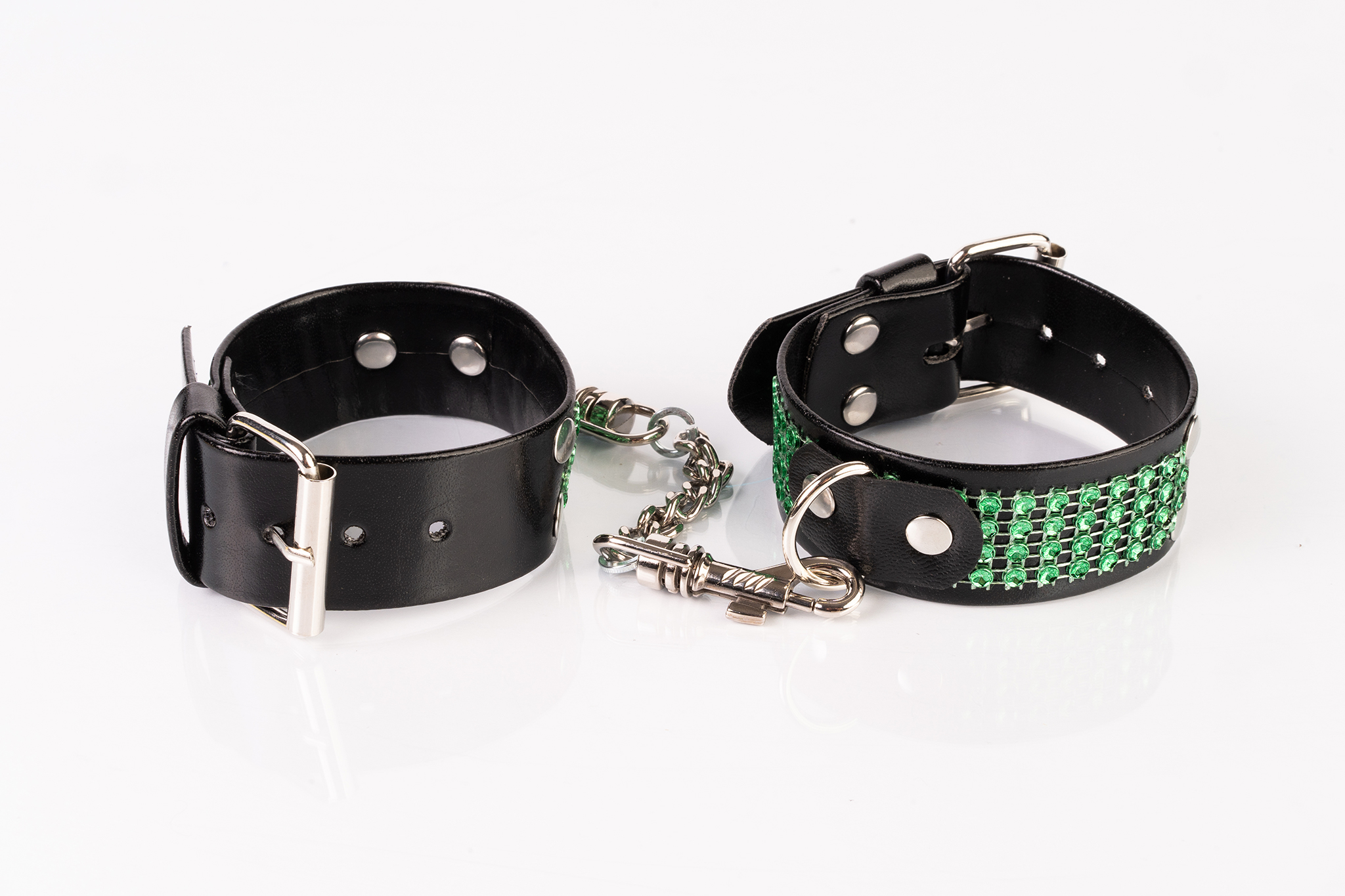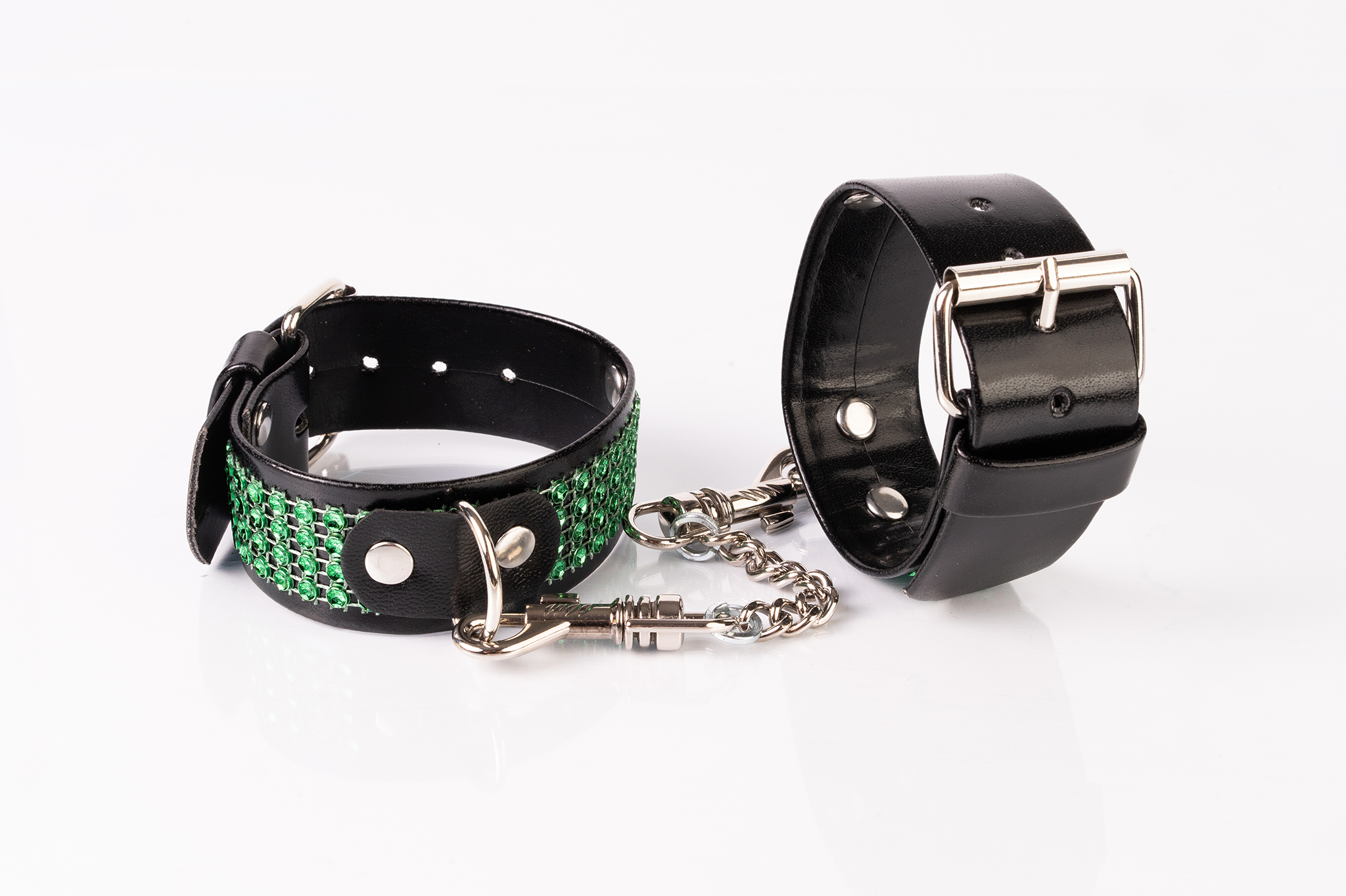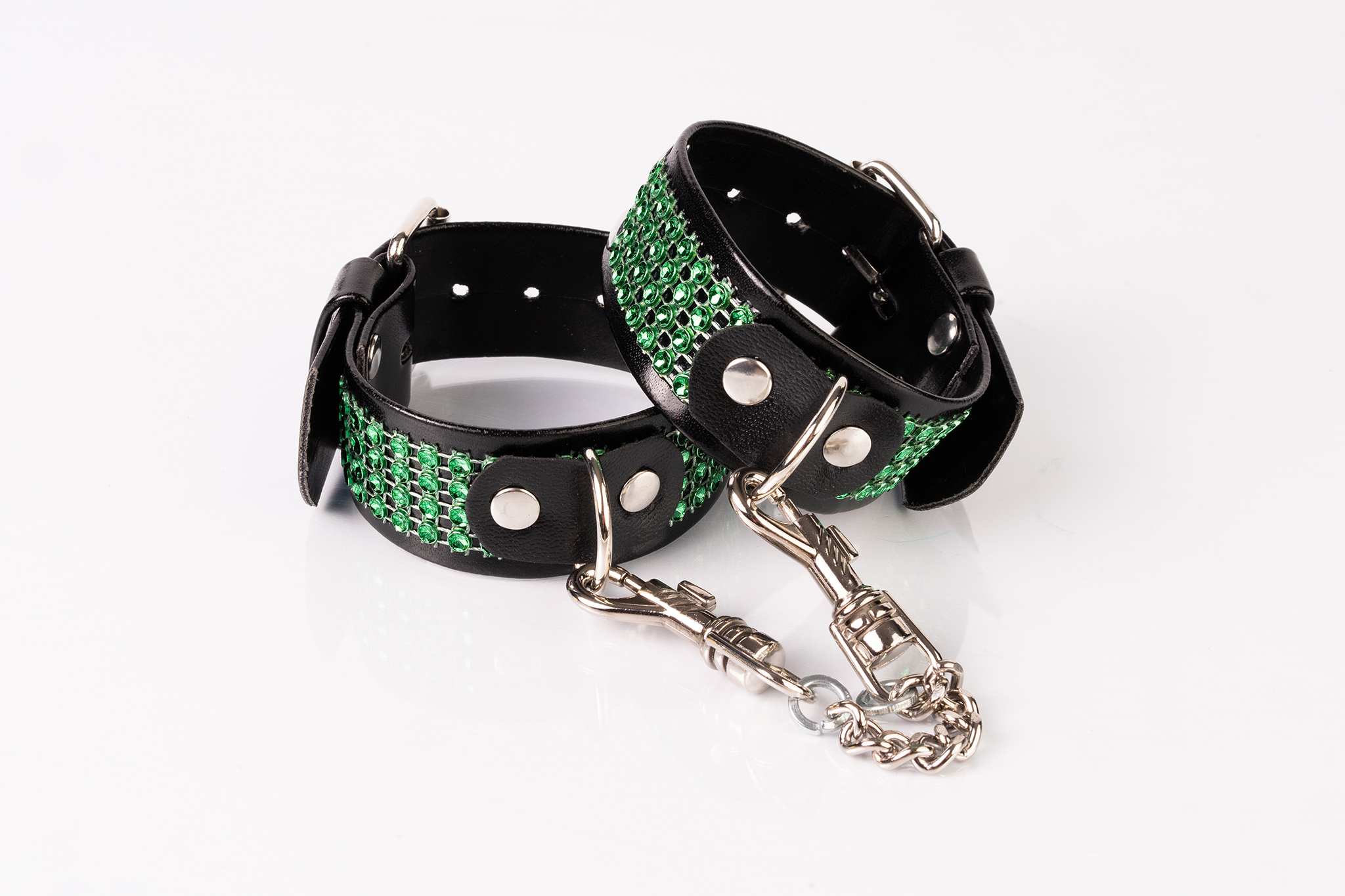 Kinkster – Veganistisch leer – Handgemaakt – Handboeien groene kristallen