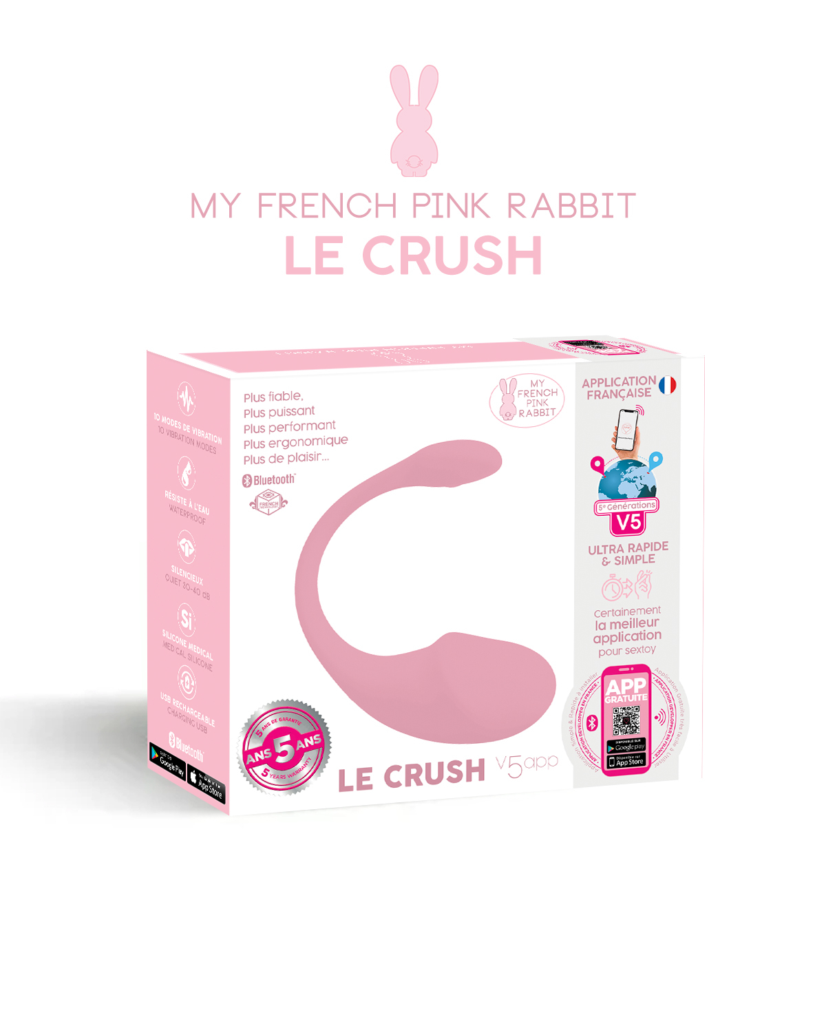 De Crush is een hyperergonomisch vibrerend eitje. Het werkt met de Franse PLAYTOY-app en kan op 1 meter of duizenden kilometers afstand worden geactiveerd.
