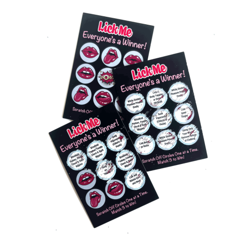 Heb je een geluksgevoel in de liefde? Kras je weg naar orale gelukzaligheid met Lick Me Lotto-loten van Little Genie! Deze sexy krasloten zijn als de Powerball voor je slaapkamer, en jullie winnen allebei! Elk pakket bevat 12 unieke loten met opwindende orale verrassingen. Met Lick Me Lotto wint iedereen en de jackpot is puur genot. Dus, pak je gelukspenning en begin met krabben – je orale geluk wacht op je! Lick Me Lotto is weer zo’n fantastisch product van Little Genie, ontworpen om koppels te inspireren om op een dieper niveau verbinding te maken door middel van romantiek, intimiteit en lachen. Probeer ook onze andere leuke lottospellen, waaronder Love Me Lotto, een seksvoorspelspel, en laat het feest beginnen met Drink Me Lotto, een hilarisch spel met drinkuitdagingen.