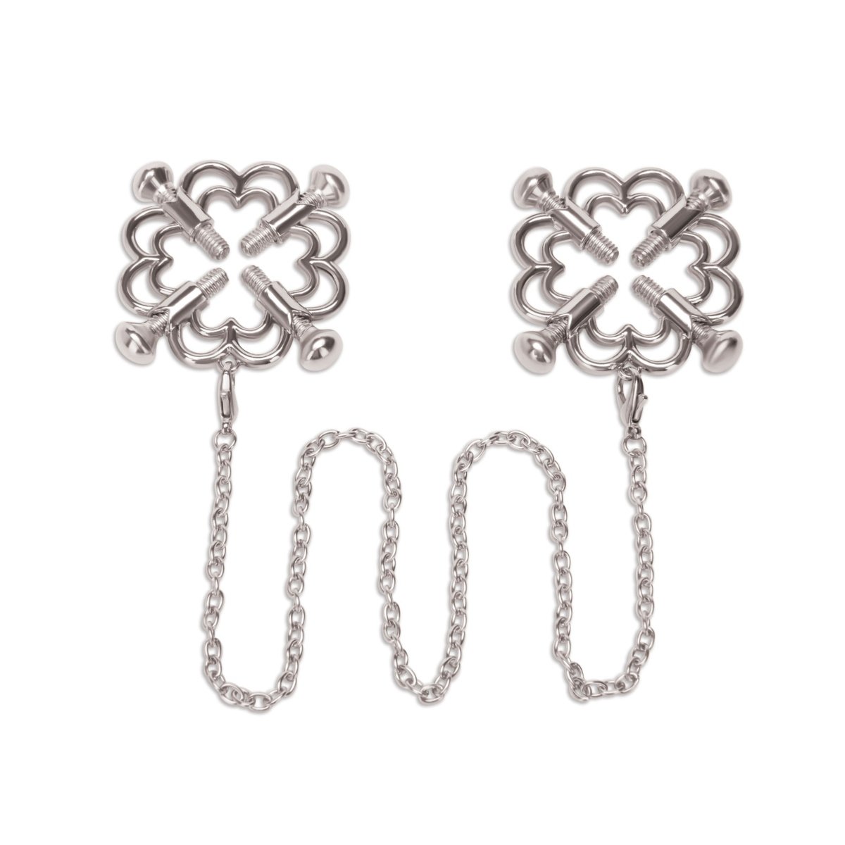 Deze tepelklemmen zijn uitgerust met 4-wegs schroefjes waarmee je de grip naar eigen wens kunt aanpassen en controleren. Het ingewikkelde bloemendesign transformeert dit kinky accessoire in een modieus en verleidelijk statement piece.