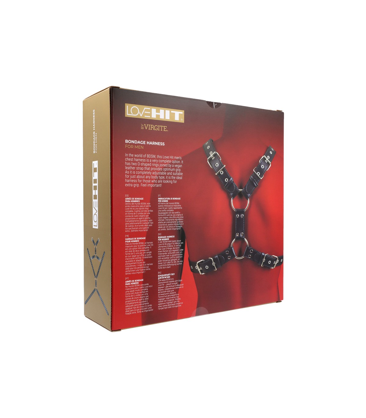 Volledig verstelbare borstgordel voor heren, gemaakt van veganistisch leer.